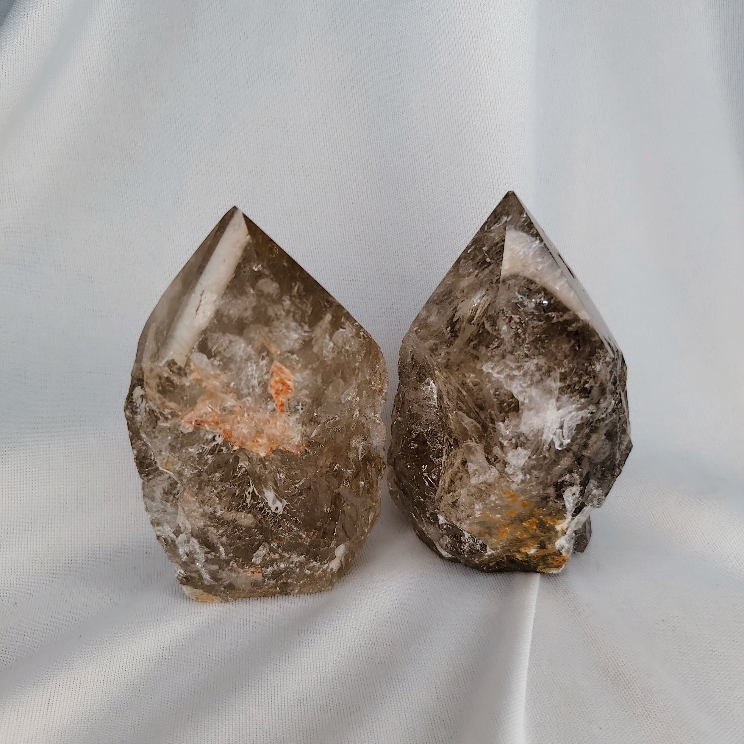 Quartzo Fumê - Este cristal é um antídoto imbatível para o estresse. Ajuda a superar tempos difíceis com coragem, aumentando a nossa capacidade de encontrar soluções. Alivia o medo e a depressão e promove a calma. Ele nos ensina a deixar para trás qualquer coisa que não sirva mais. Esse cristal nos ajuda na aceitação do corpo físico e da natureza sexual, aumentando a virilidade e purificando o Chakra da base, de modo que a energia sexual possa fluir naturalmente. Pode ser usado para dissolver suavemente energias negativas e bloqueios emocionais; permite a entrada de frequências positivas. Nutre o 1º chakra (base).