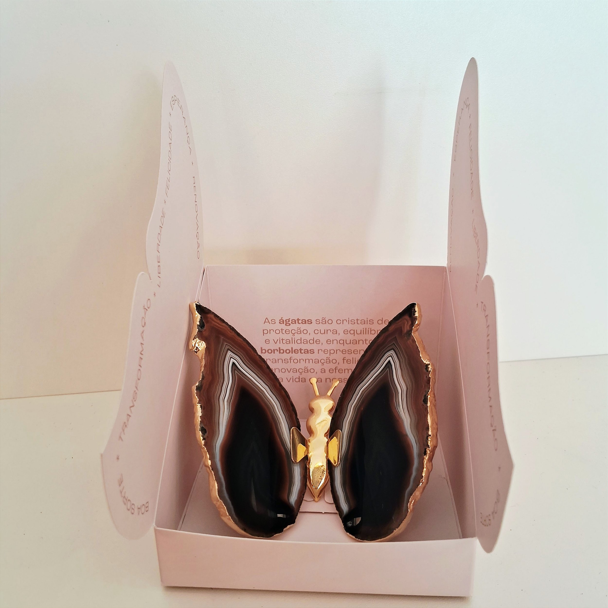 Borboleta Ágata Marrom - Borda Dourada