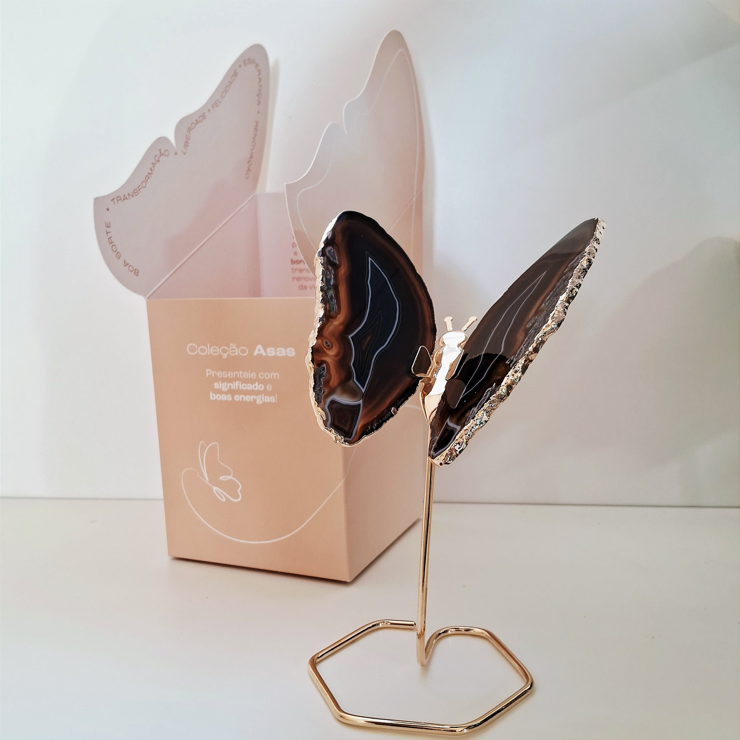 Borboleta Ágata Preta - Base Dourada - Base de Ferro