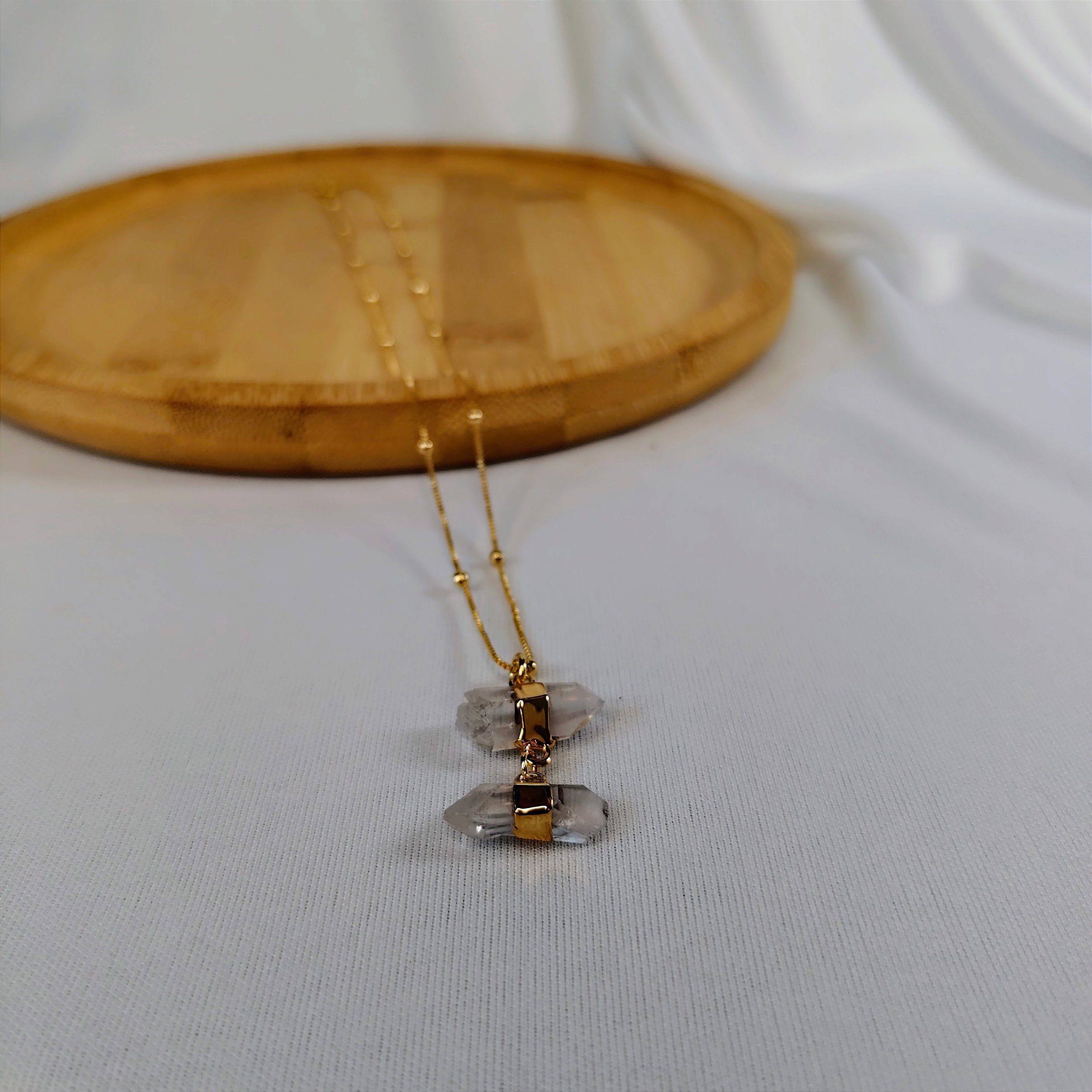 Colar Bolinha 2 Cristais de Quartzo - Folheado a Ouro